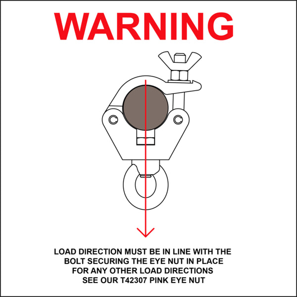 The industry standard half coupler factory fitted with an Eye Nut. A high tensile extruded aluminium clamp that is suitable for 48mm to 51mm (1.89” – 2.01”) diameter tubes and is 50mm (1.97 lbs) wide. Ideal for trussing as it will not damage the cords.
