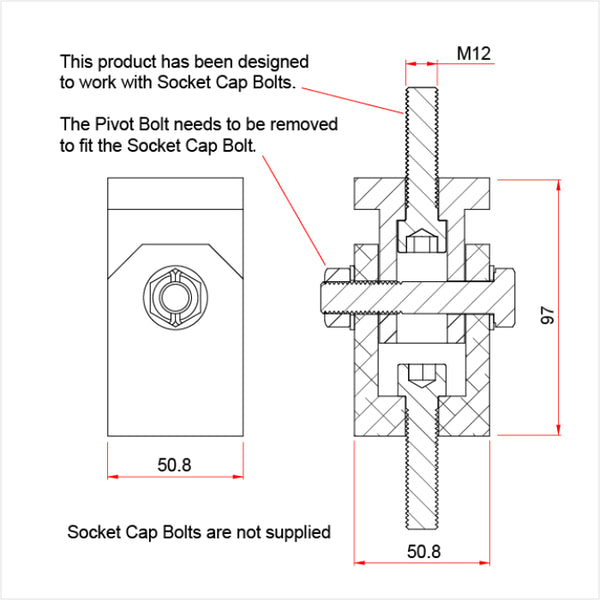 The pivot hinge is designed only to work with Socket Cap Bolts.