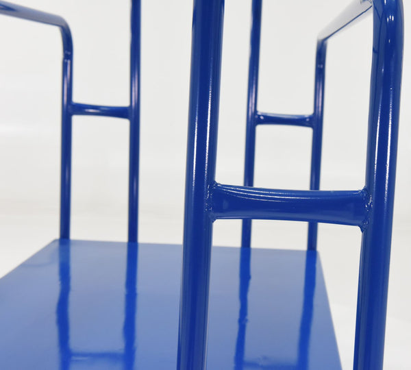 Heavy duty steel platform cart supports multiple sizes of sheet material such as paneling, plywood, drywall or anything that is long, bulky and hard to handle. Ideal for lumberyards and hardware stores. Rolls on (4) 5" x 1-1/2" swivel poly-on-steel and (2) 8" x 2" rigid poly-on-steel casters. Center caster provides great maneuverability.